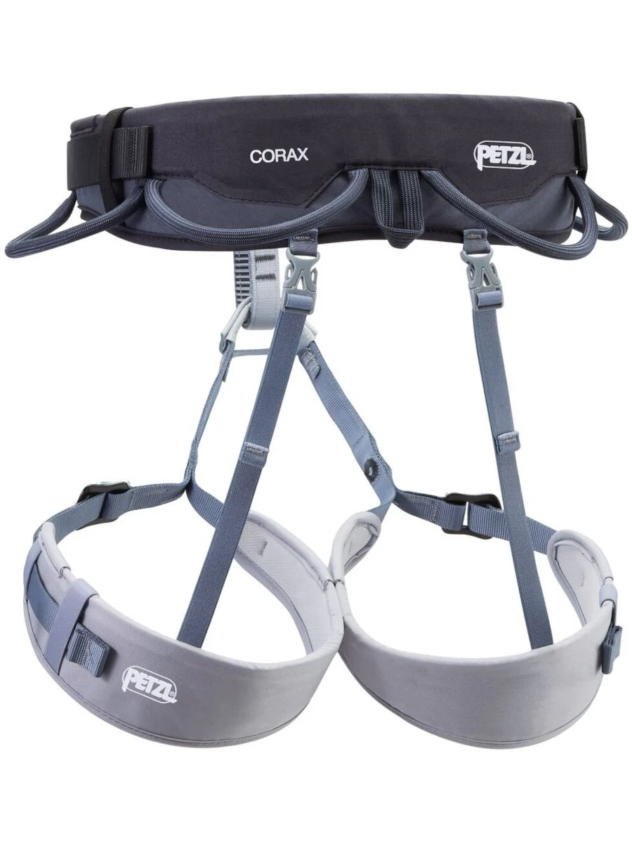 The Petzl Corax is a versatile and fully adjustable harness ideal as an all rounder from bolt clipping in the sun to ice climbing in Scotland. The most noticeable feature of the Corax is the double adjustable waist belt, this means that the belay loop can always be kept central and it also gives a larger range of adjustment. The leg loops are also adjustable making the Corax ideal to go over lots of different clothing types.